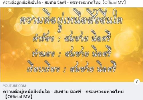 ความดีอยู่เหนือสิ่งอื่นใด - สมชาย นิลศรี - กระทรวงมหาดไทย【Official MV】 - YouTube